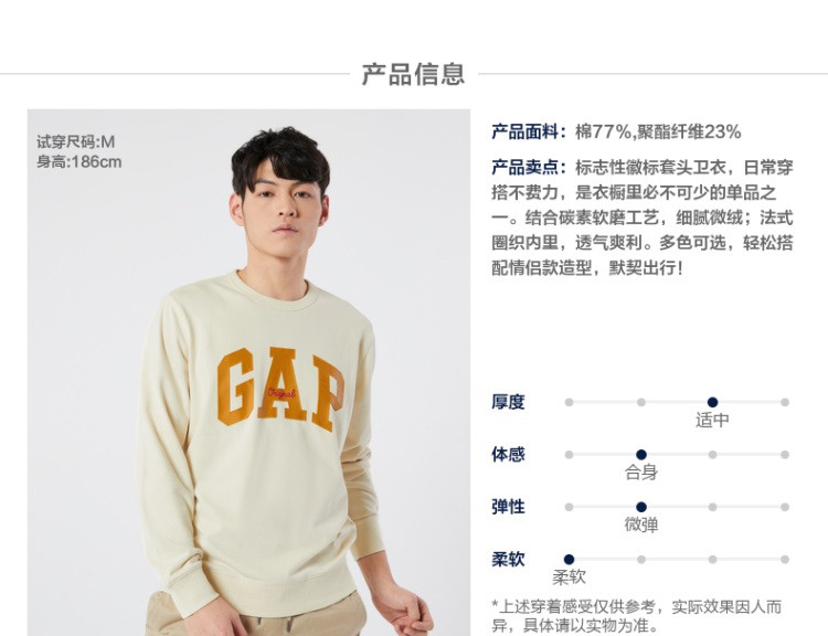 Gap男女装美式复古LOGO法式圈织软卫衣877448秋季情侣运动上衣