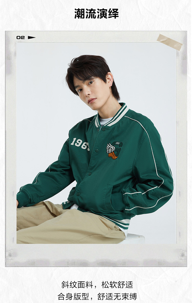 【明星同款】Gap男女装秋季2023新款LOGO棒球服769906校队夹克