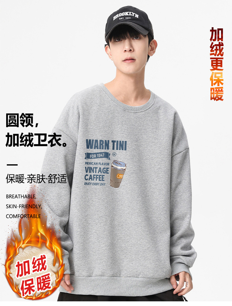 卫衣男冬季加绒加厚舒适潮流保暖上衣男士运动时尚圆领套头衫