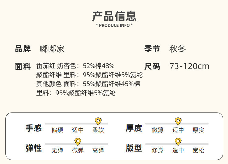 面料: 番茄红 奶杏色:52%棉48%聚酯纤维 里料:95%聚酯纤维5%氨纶