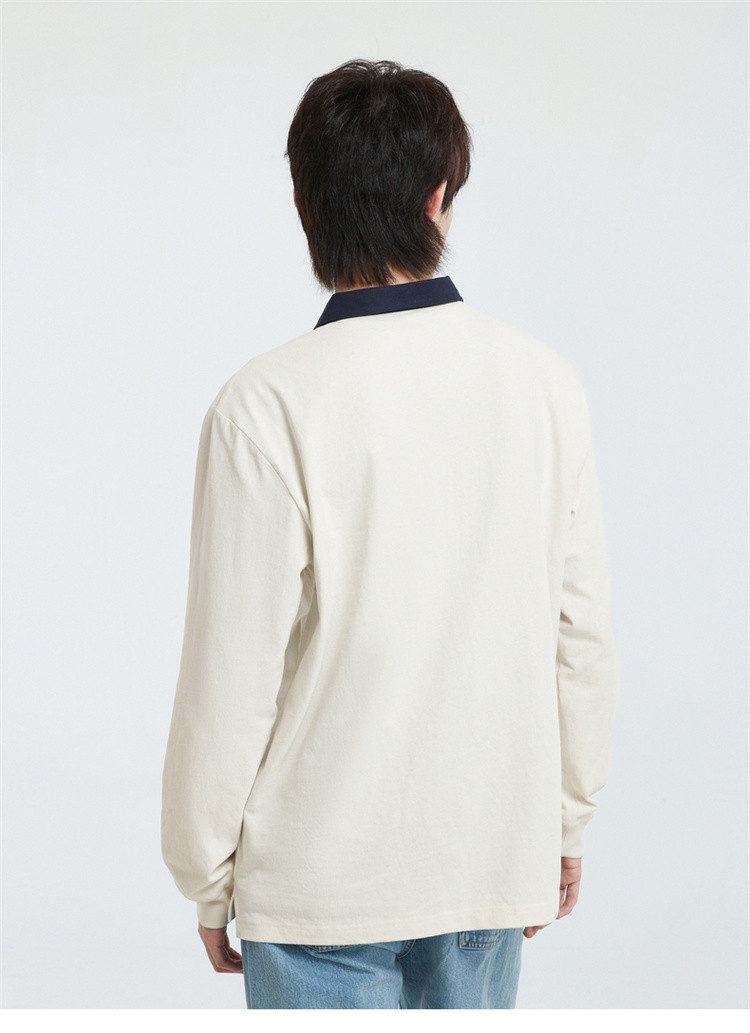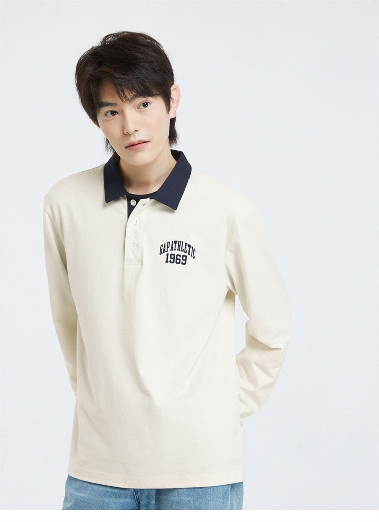 Gap男装秋季2023新款LOGO水洗棉宽松衬衫领长袖T恤773162休闲上衣