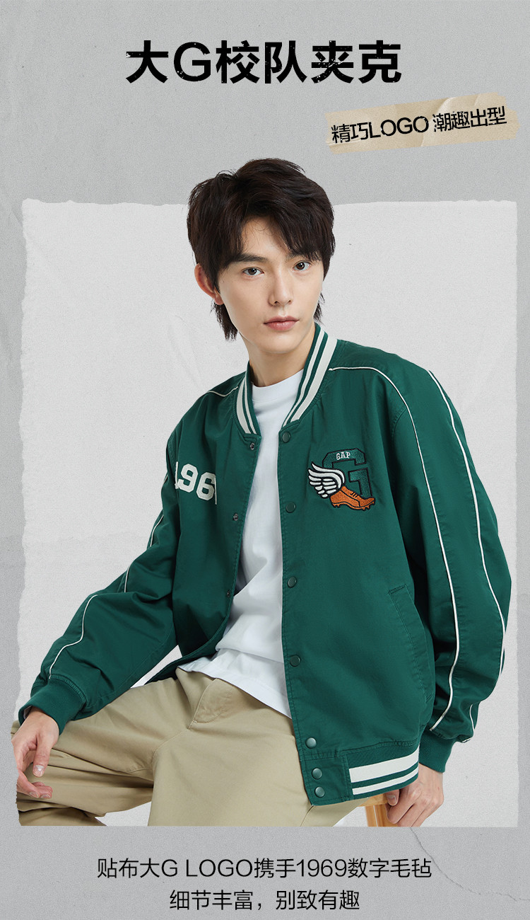 【明星同款】Gap男女装秋季2023新款LOGO棒球服769906校队夹克