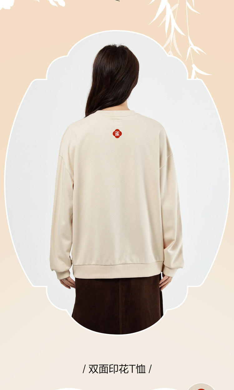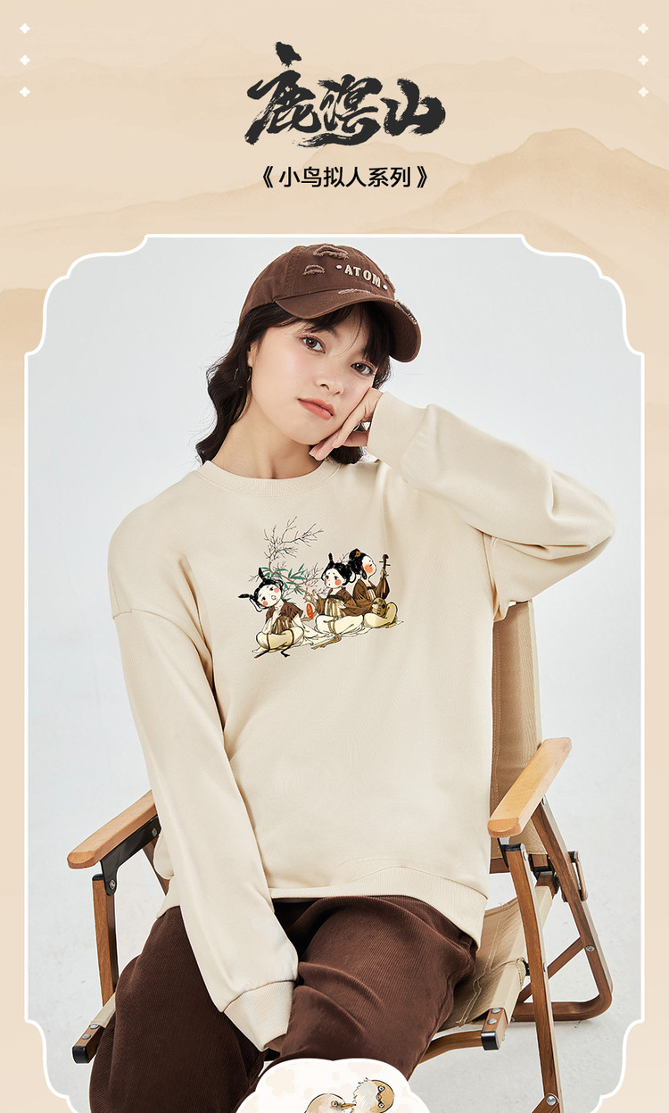 小鸟拟人系列印花卫衣女2023秋冬新品加绒宽松圆领套头卫衣女