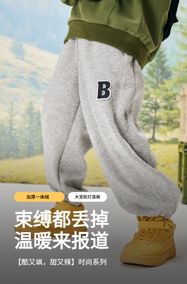 男童女童运动裤加绒哈伦裤2023秋新品儿童宽松长裤帅气时髦潮